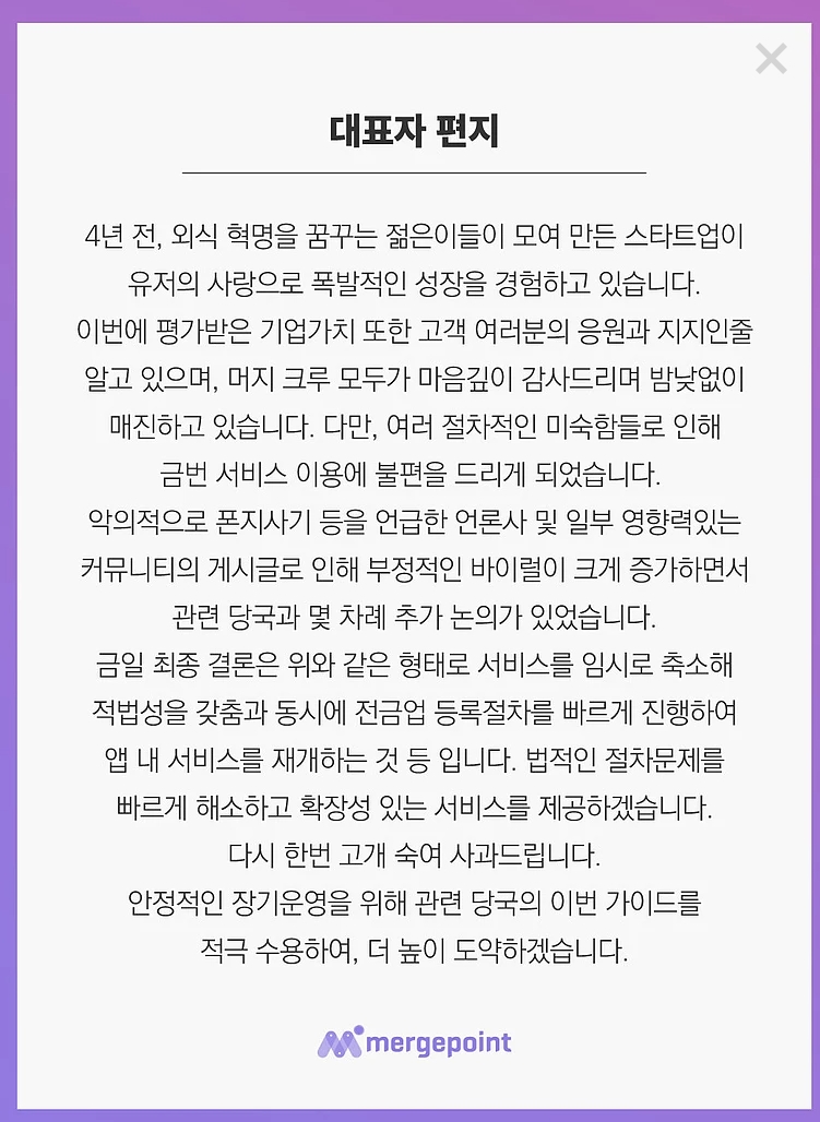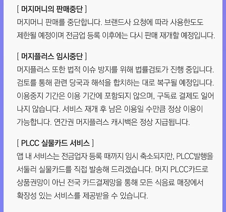 현재 머지포인트 사용은 불가능한 상황이며, 구글 독스를 통한 환불신청 페이지만 운영되고 있는 상황입니다.